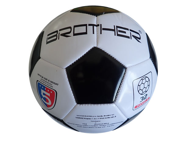 Kopací míč Brother VWB32 je černobílý míč klasického provedení se 32 panely ve velikosti 5, materiál je čtyřvrstvá PVC kůže. Míč si udržuje stálý tvar díky zpevněnému vláknu a určený pro mládež a rekreační hru na trávě nebo na měkkých površích - písek nebo umělá tráva a podobně. Hmotnost míče je 400 - 420 g, míč má oficiální velikost.