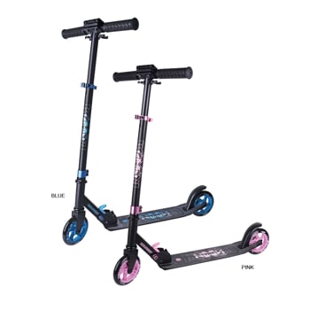 Dětská skládací koloběžka se zadní blatníkovou brzdou. Koloběžka je lehká, snadno přenosná. Snížená úroveň stupátka nad povrchem. Hlavové složení se závitem. Řídítka jsou opatřena eloxovanou objímkou pro zmírnění otřesů.